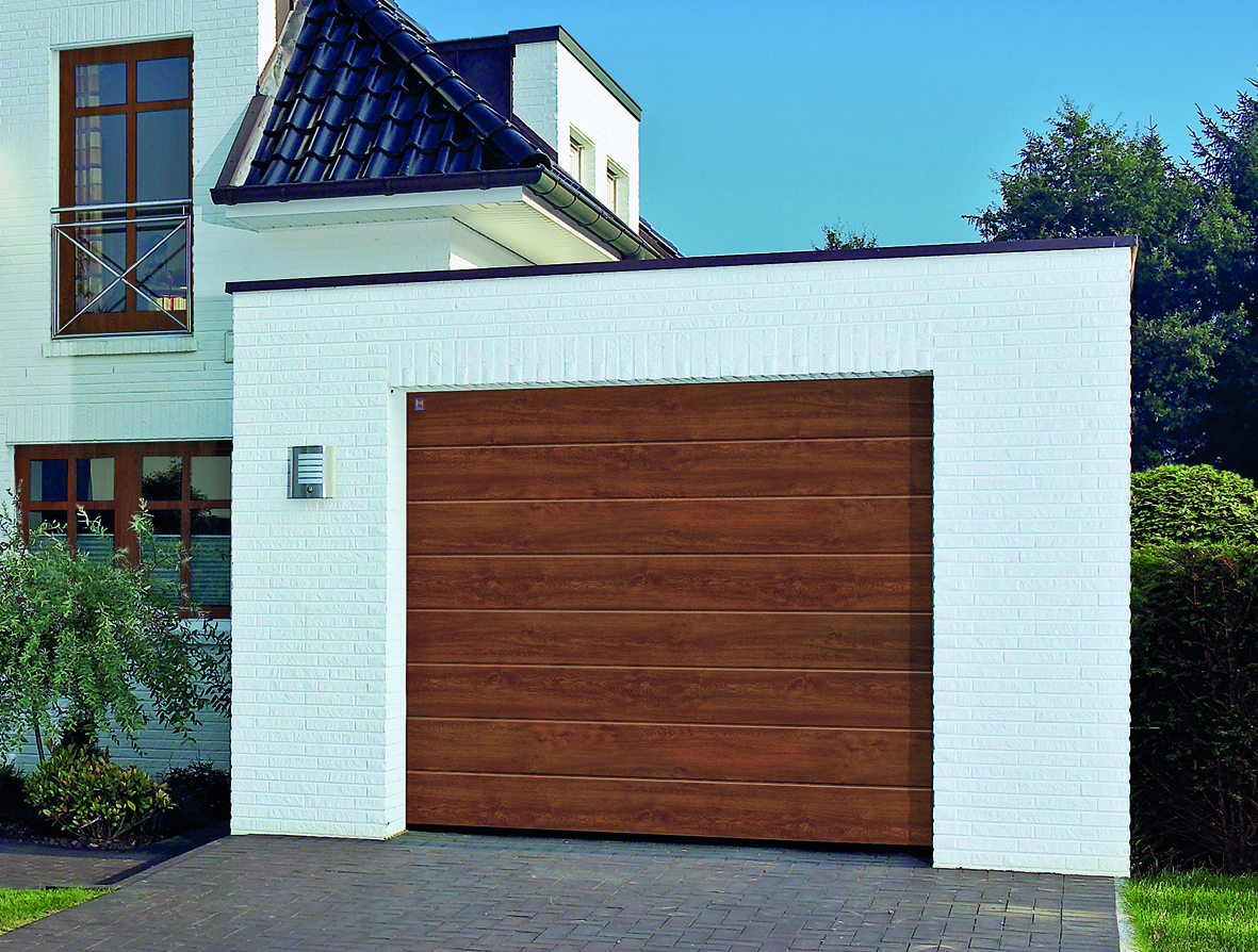 Bramy RenoMatic light o nowym wzorze powierzchni DecoColor, imitującym strukturę drewna, oferowane są w kolorze Golden Oak i Dark Oak.