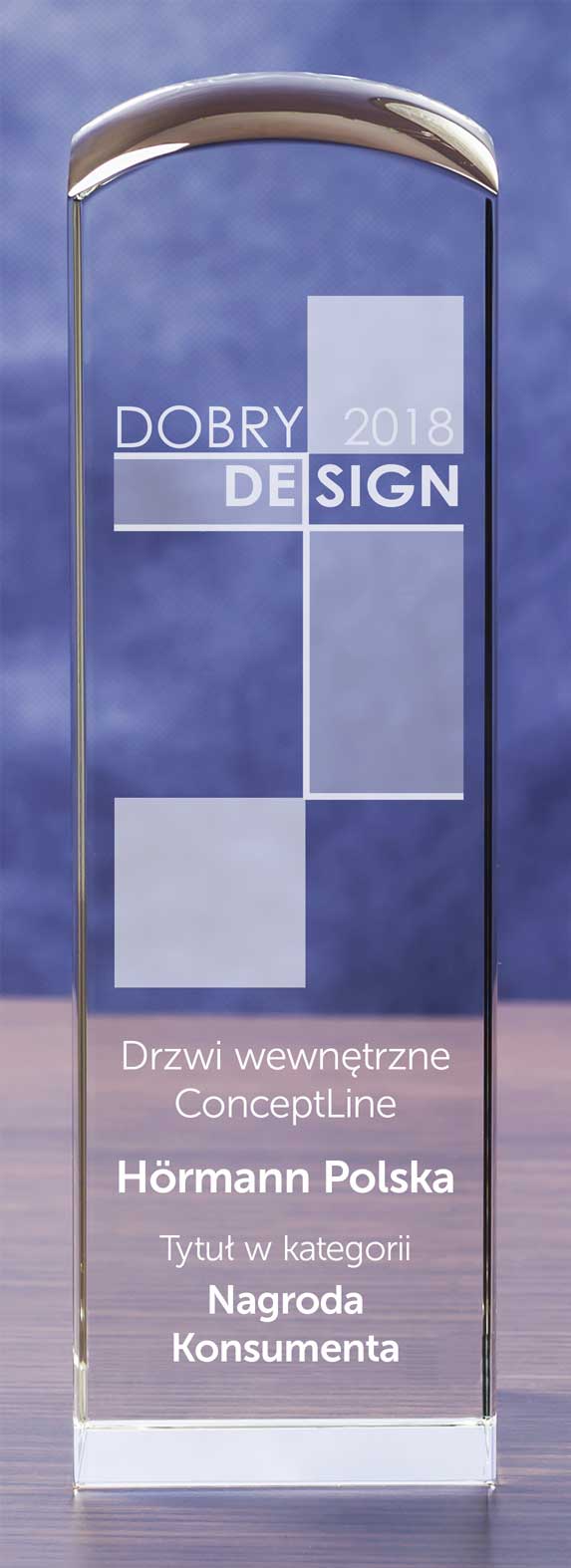 Drzwi wewnętrzne z serii ConceptLine wyróżnione zostały Nagrodą Konsumenta, przyznawaną przez użytkowników portalu dobrzemieszkaj.pl. Konsumenci docenili szerokie możliwości aranżacji, jakie stwarzają te bardzo wytrzymałe, stabilne i odporne na wszelkie uszkodzenia drewniane drzwi firmy Hörmann. Seria ta daje bowiem szczególną sposobność indywidualnego zestawiania faktur i kolorów. Dzięki łączeniu doskonałej jakości powierzchni ultramatowej, błyszczącej lub strukturalnej z kolorami białym, jasnoszarym lub antracytowym drzwi te pasują dobrze do wnętrz o różnym charakterze.